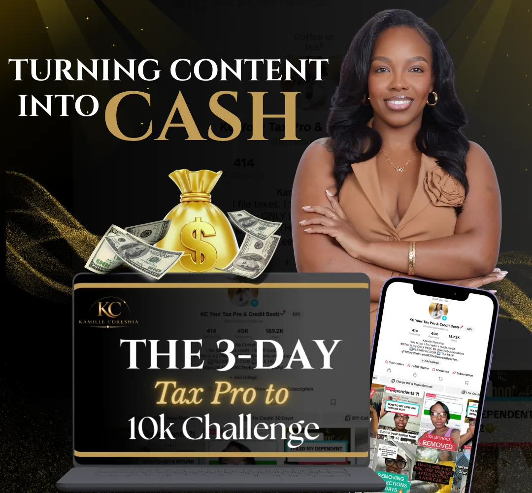 Kamille Coreshia is a digital entrepreneur who promotes digital products on TikTok. She is mainly a tax professional and credit repair expert. With years of experience helping individuals strengthen their financial foundation and build multiple income streams, she is dedicated to showing others how to turn content creation into real cash flow and long-term online opportunities.